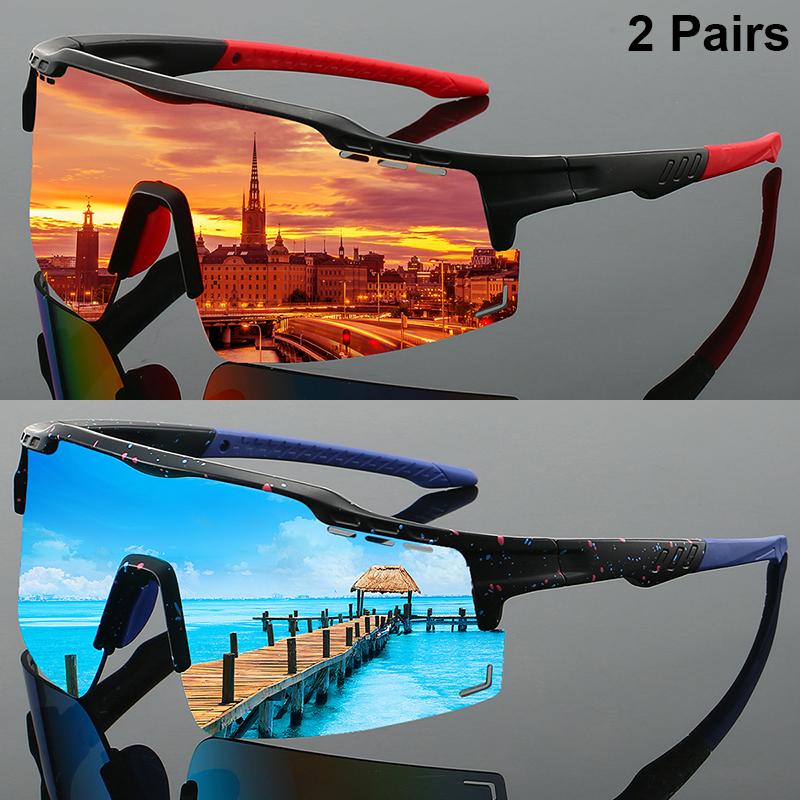 1 Paar Halbrandlose Sportbrille Herren Spiegel Fahrradsonnenbrille Übergröße Winddicht Wrap-Around Rund Anti-UV-Schutz