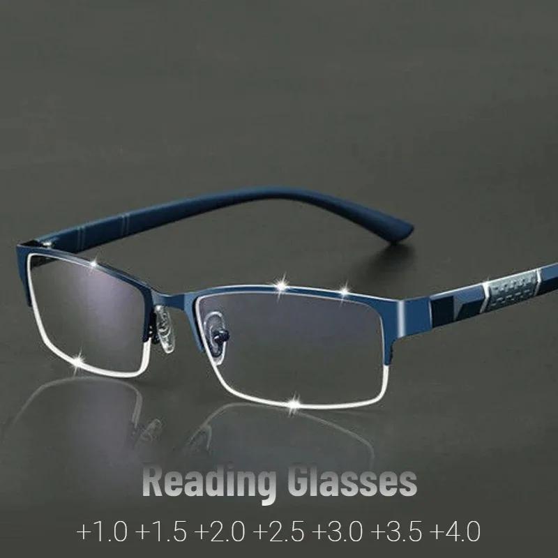 New Metal Anti-blue Light Reading Glasses for Men Business Eyewear Diopter 0 to +4.0 Farsighted Vision Correction