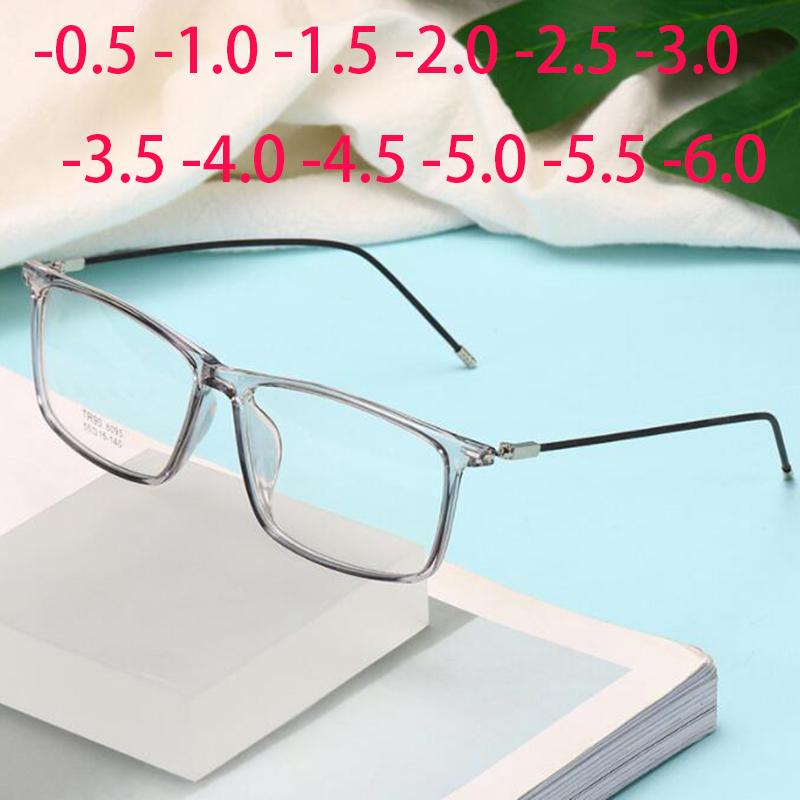 Finished Myopia Glasses TR90 Frames Ultra Light Square Eyewear Prescription Diopters -1.5 To -6.0 For Women Men