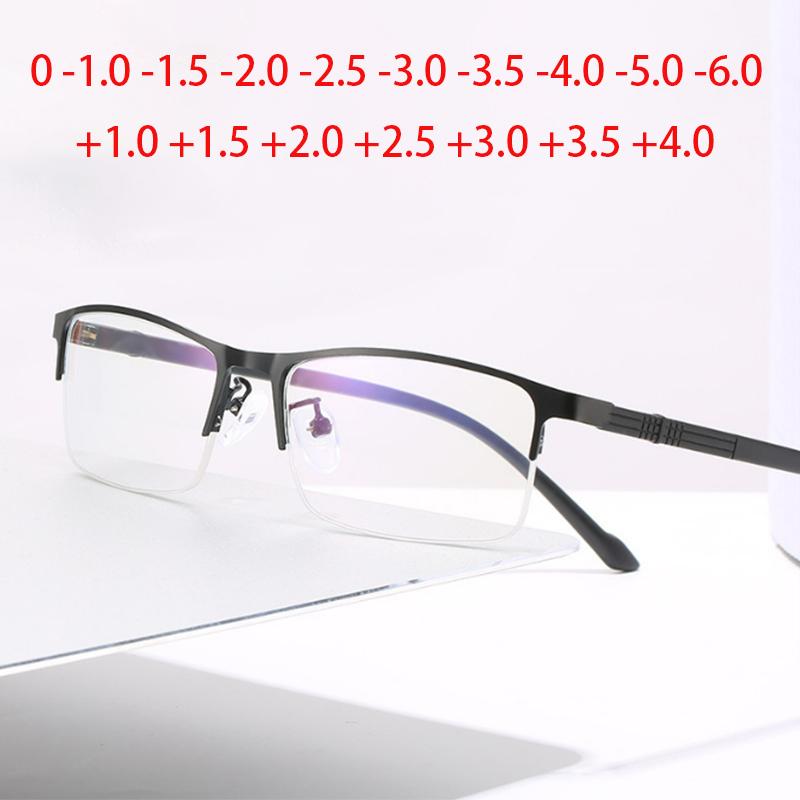 Metal Half Frame Square Myopia Glasses -6 To 0 Degree Student Reading Eyewear +1 To +4