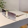 Rimless Punk Vintage Square Sunglasses Women Men Luxury Brand Designer UV400 Metal Leopard Head Shade