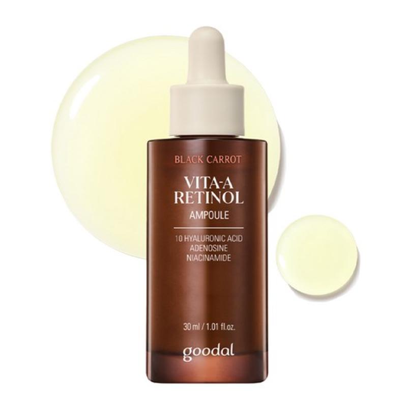 GOODAL retinol ampoule, black carrot ampoule, Vita A retinol serum, Korean firming serum, anti aging ampoule, elasticity care serum, wrinkle improvement serum, night retinol treatment, firming skincare