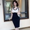 Summer new contrasting color V-neck sleeveless knitted vest skirt women's high-end waist and thin hip dress