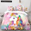 Einhorn-Bettwäsche-Set (King- und Queensize) mit Märchenmotiven und magischen Tieren für Kinder (Jungen und Mädchen) – Sternenuniversum – Polyester-Bettbezug