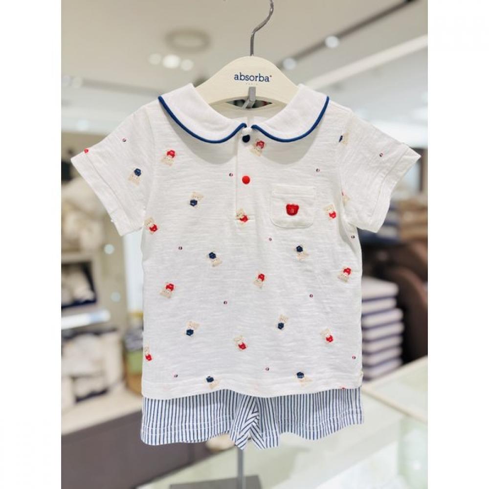 The Absorba 2026 Spring/Summer Maternity and Baby Celebration Gift Baby Half-Sleeve Top and Bottom Set features a lovely bear design adorning the front. Made from stretchy and cool fabric, it is comfortable to wear every day.
