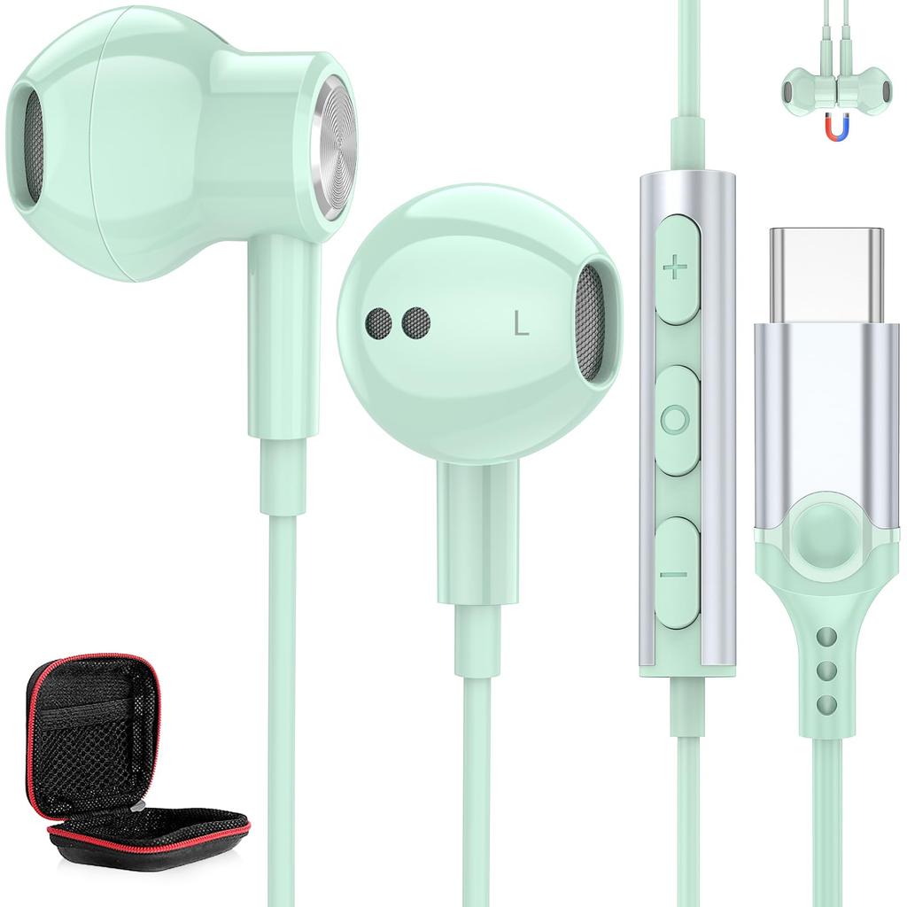 Type-C Wired Earphones with Mic for iPhone 15/16, Noise Cancelling In-Ear Headphones with Magnetic Design, High Sound Quality, Call Support, Deep Bass, PC, Android Smartphone Earphones, iPad Pro, MacBook, Gaming, USB-C Earphones, Iyahon, Headphones Compatible with iPhone 15, iPad, Pigcell, Tablet, Telework, Online Meetings, Zoom, Skype, LINE Calls, C-Type Earphones, Volume Control, Remote Control, Cute, Compatible with iPhone 17, 16, 15/15 Pro/15 Pro Max/15 Plus, iPad Pro Air 4, 5 mini, 6, 10th Generation Earphones, Google Pixel 10, 9, 8/8 Pro, 7a, 6 Pro, 6, 5, 4XL/4, 3XL/3, Samsung Galaxy A53, A54, A34 5G, Galaxy S22, S23, S24, S25 Ultra 5G, S21 s22 s23 FE S20 S2