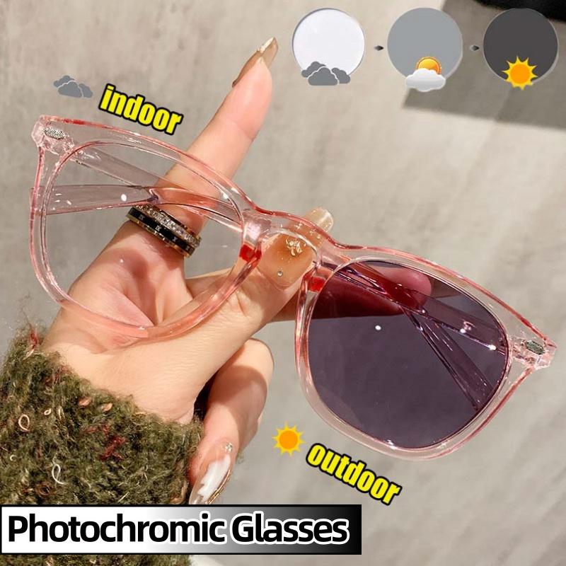 Men's Square Photochromic Glasses Blue Light Blocking Full Frame Eyewear for Women Eye Protection Business Style