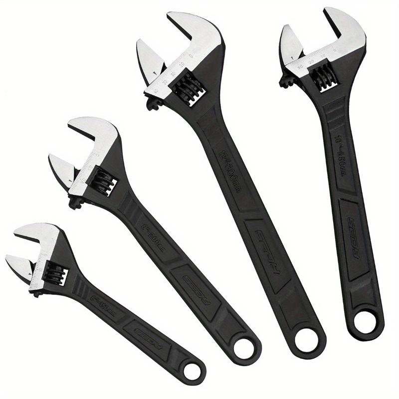 Adjustable Wrench Set Wrenches Sets: 4-Piece 6, 8, 10, 12 Inch Chrome Vanadium