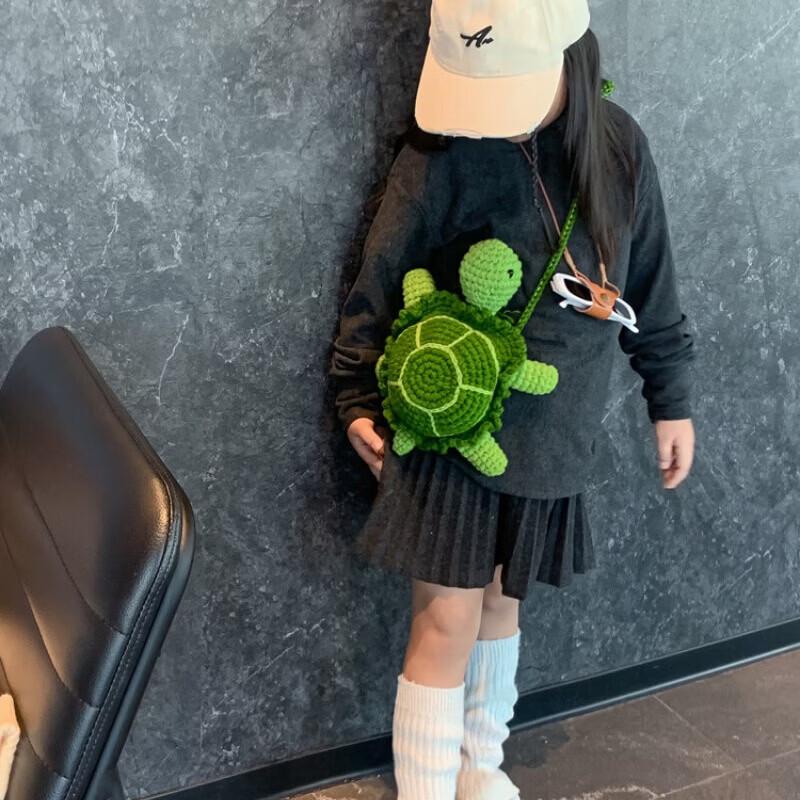 Cartoon-Schildkröte Gestrickte Kinder Umhängetasche