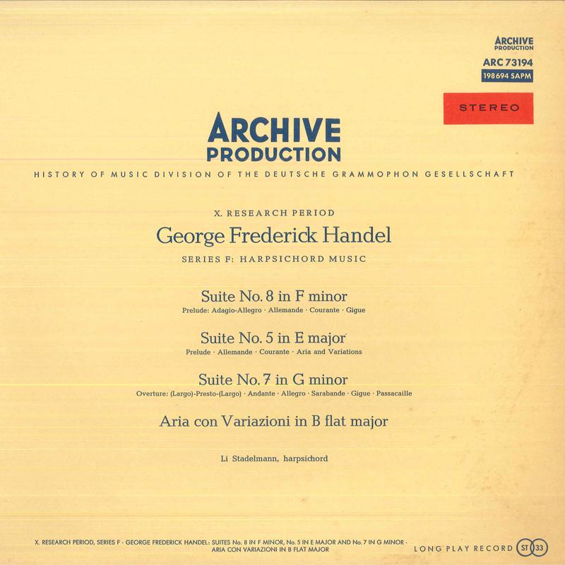 TITLE: Suites No. 8 In F Minor, No. 5 In E Major, No. 7 In G Minor, Aria Con Variazioni In B Flat Major