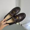 [Su Family] Cowhide Edition~ Flat Bottom~ Horse Leather Retro Polished Small Gold Coin Loafu Single Shoes Women's Small Leather Shoes
