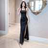 This Elegant Spaghetti Strap Evening Gown seamlessly blends sophistication and versatility, perfect for transitioning from a chic nightclub look to a polished work attire. Crafted from high-quality polyester, the gown features a soft, silky feel that enhances comfort and elegance. The flattering spaghetti straps add a delicate touch, making it an ideal choice for a variety of occasions, whether it's a night out or a formal event.