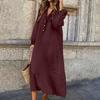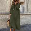 This elegant midi dress offers a perfect blend of comfort and style, crafted from a premium cotton-linen blend for a soft, breathable feel. Designed with long sleeves and a loose fit, it provides effortless sophistication and versatility for any occasion. The dress is tailored in a plus size to ensure a flattering fit for all body types, while the chic V-neckline adds a touch of femininity. Ideal for both casual outings and more formal events, this dress can easily be dressed up or down to suit your personal style.
