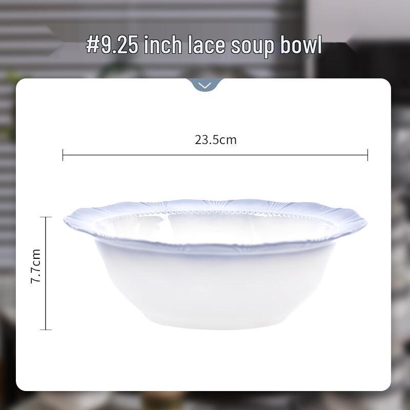 Luxury Azure Floral Ceramic Soup Bowl with Lace Edge