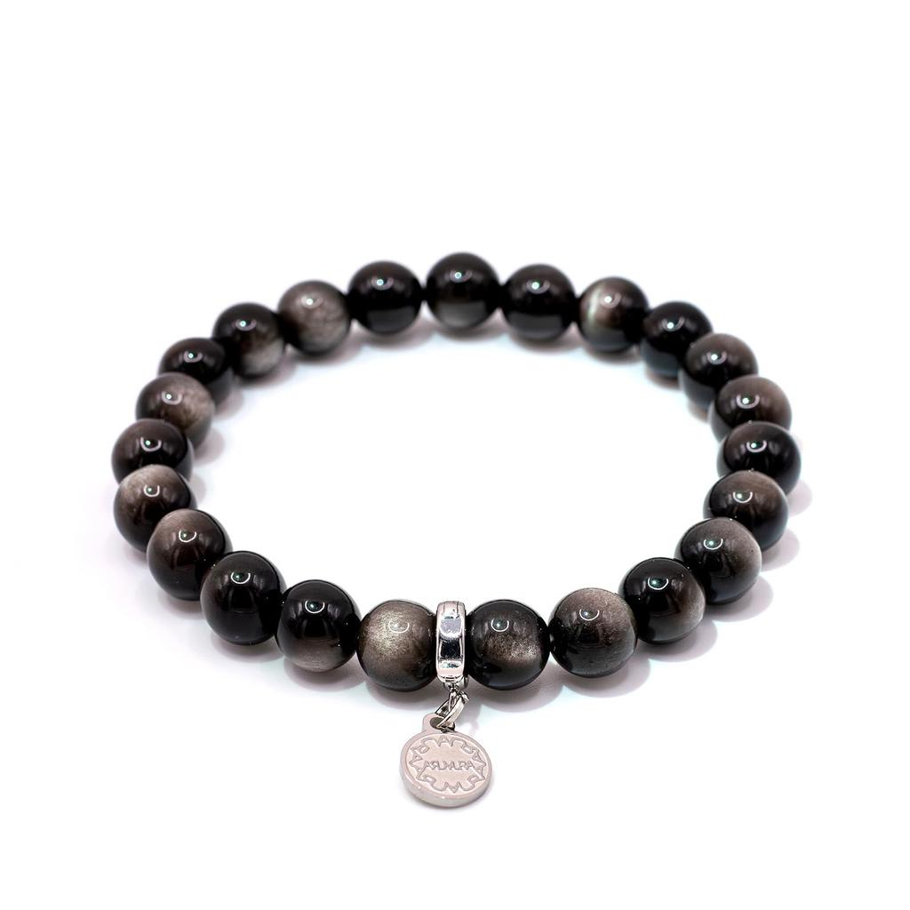 ARUAURA Lucky Silver Obsidian and Natural Stone Power Stone Prayer Good AURA0005 Bracelet, 8mm, Beads, Amulet, Fortune, Success, Healing,