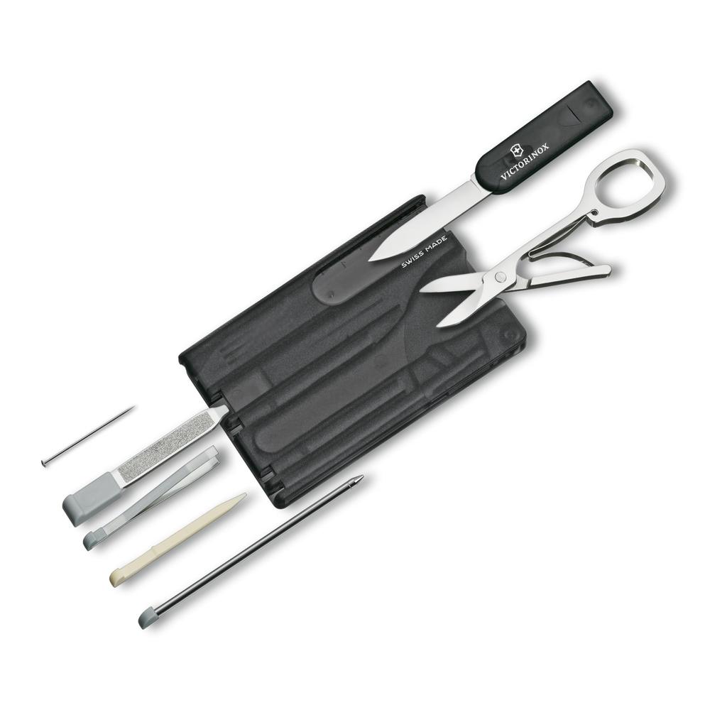 VICTORINOX Swiss Army Knife with Swiss Card Classic Translucent Black, Multi-Function Stationery, Scissors, and Ballpoint Pen, Swiss-Made 10-Function