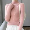 Women’s 2025 Autumn/Winter Pure Wool Sweater, Half-High Neck, Ribbed, Slim-Fit, Figure-Flattering with Cashmere Inner Layer