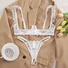 Blumen-Spitzen-Dessous-Set ohne Schritt: Zweiteiler mit Nippel-Enthüllung und sexy Cut-Out-Design