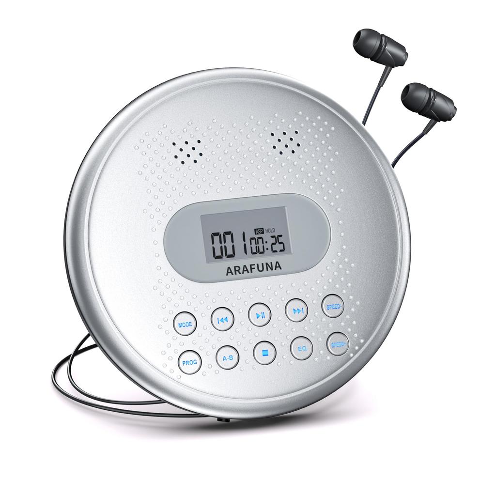 1. [CD Player with Built-in Speakers] This CD player features built-in high-quality stereo dual speakers, allowing you to hear the sound even without headphones, reducing ear strain. This compact and lightweight CD player is convenient for carrying around when you're out and about. This high-quality CD player also features a speed control, making it ideal for language learning and listening practice. Note: Turning the "HOLD" button on locks the buttons to prevent accidental operation. Any button presses will be disabled. Solution: Turn "HOLD" off to disable the key lock (hold function). 2. [Rechargeable CD Player] This portable CD player features a built-in, high-capacity 1400mAh lithium-ion rechargeable battery, providing approximately 6-12 hours of playback time at medium to low volume on a full charge. The included USB charging cable allows for charging via a mobile power source, PC, computer, or AC power source. A full charge takes approximately 3-4 hours. Enjoy effortless CD player use anytime, anywhere. Note: This unit requires a 5V/1A charger or AC power source for charging. ③ [CD Player for Language Learning] This portable CD player is equipped with a variety of cutting-edge features. ① ASP Function: Skip prevention (CD: 100 seconds, MP3: 180 seconds) ensures uninterrupted sound even on the commute to school or work. ② 5 Equalizers: Choose from BBS, Pop, Jazz, Rock, and Classic EQ effects to perfectly match your music. ③ 5 Playback Modes: Preview Playback (INTRO): Plays the first 10 seconds of each song, sequential play, repeat one song (REP1), repeat all songs (ALL), and random play (SHUF). Choose the playback mode that best suits your mood. ④ Resume Function: Continue playing from where you left off even after powering off. ⑤ A-B Repeat Function: Repeats a desired section. ⑥ PROGRAM Playback: Plays the CD in the order of your choice. ④ [Wide Compatibility & AUX Function] This car CD player supports a variety of audio formats, including CDs, CD-Rs, HDCDs, MP3 discs, MP3 and WMA audio files, and MicroSD cards up to 32GB in FAT format. However, it does not support VCDs, DVDs, Blu-rays, or SD audio files. (Note: Only FAT 32GB MicroSD cards are supported; SD cards are not supported.) Furthermore, the included AUX cable allows you to connect to any external speaker device with a 3.5mm AUX function, such as a car audio system, for playback.