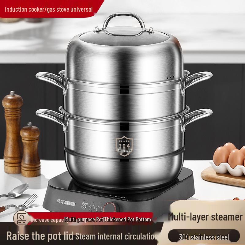 Three-Layer Multi-Functional 304 Stainless Steel Steamer Pot with Large Capacity for Steaming and Boiling
