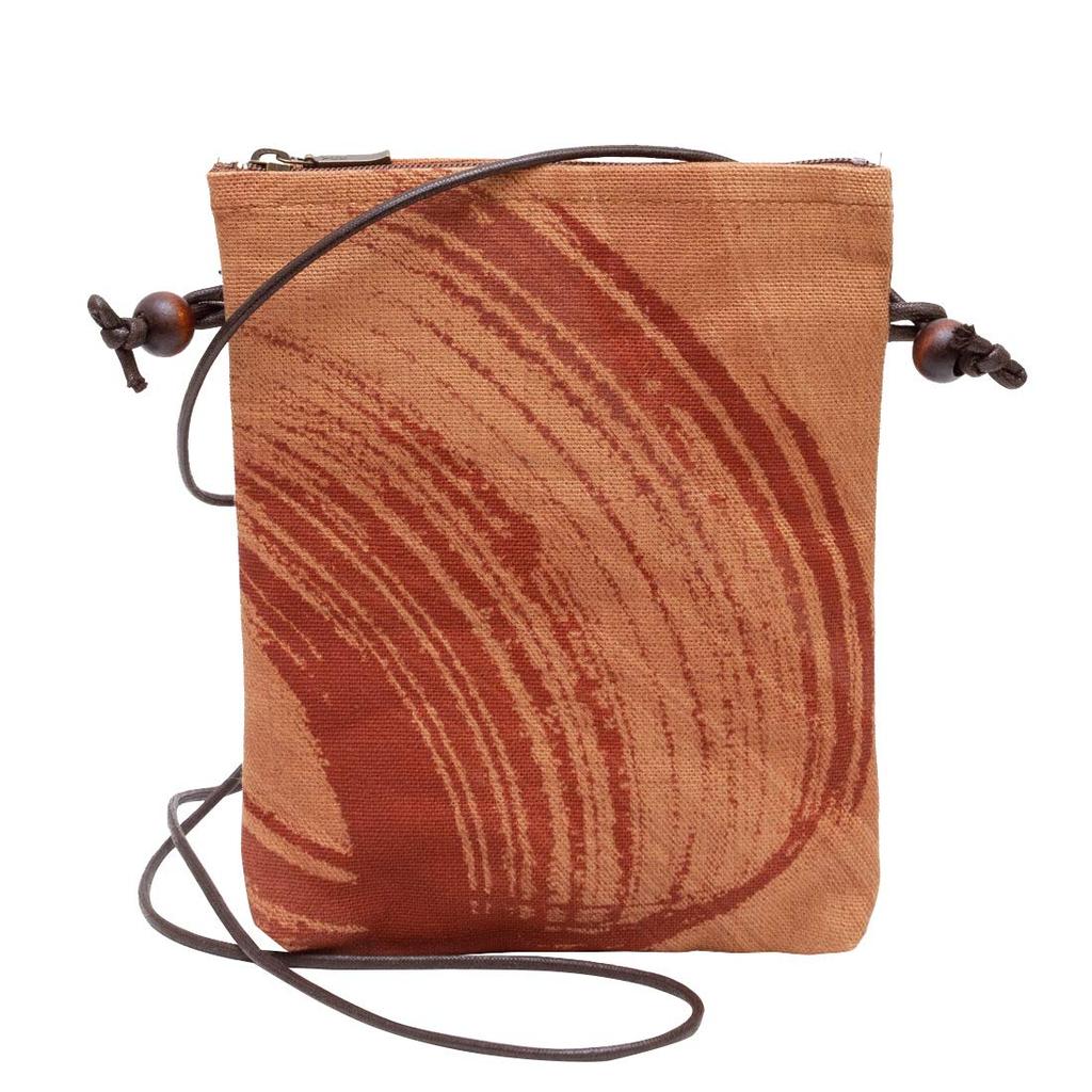 Creare Kiki Women's Small Pouch, Made in Japan, Kimono Style, Persimmon Tannin Dyed Canvas, Lightweight, Kyoto, KS-76, Red Hand-Painted, KS-76b