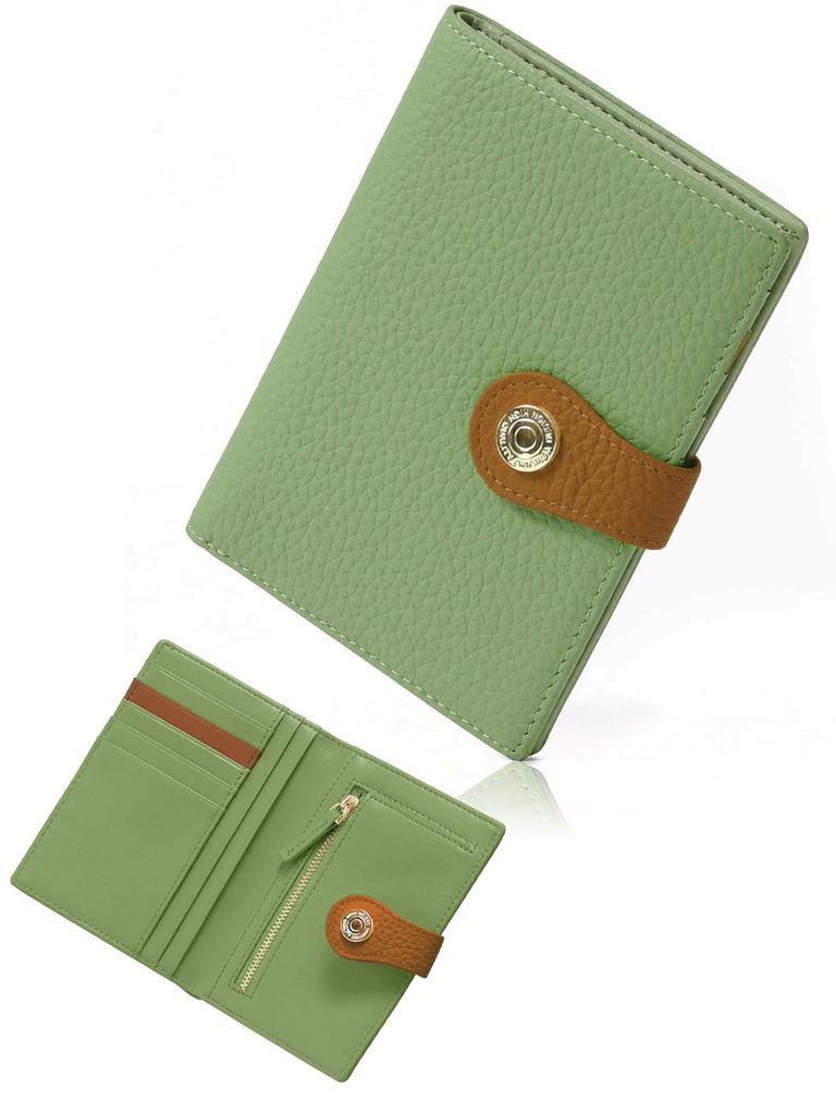 Blanc Pomme Damen Geldbörse aus echtem Leder, Zweifarbiges Design, Dünn und Stilvoll, Grün, bp-1087