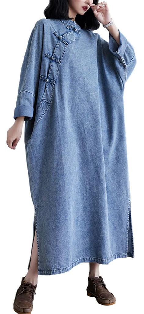 The combination of ethnic design and classic denim adds a touch of elegance to the calm colors without being too casual. The long length makes it an excellent piece that creates a beautiful silhouette for anyone, regardless of body type.