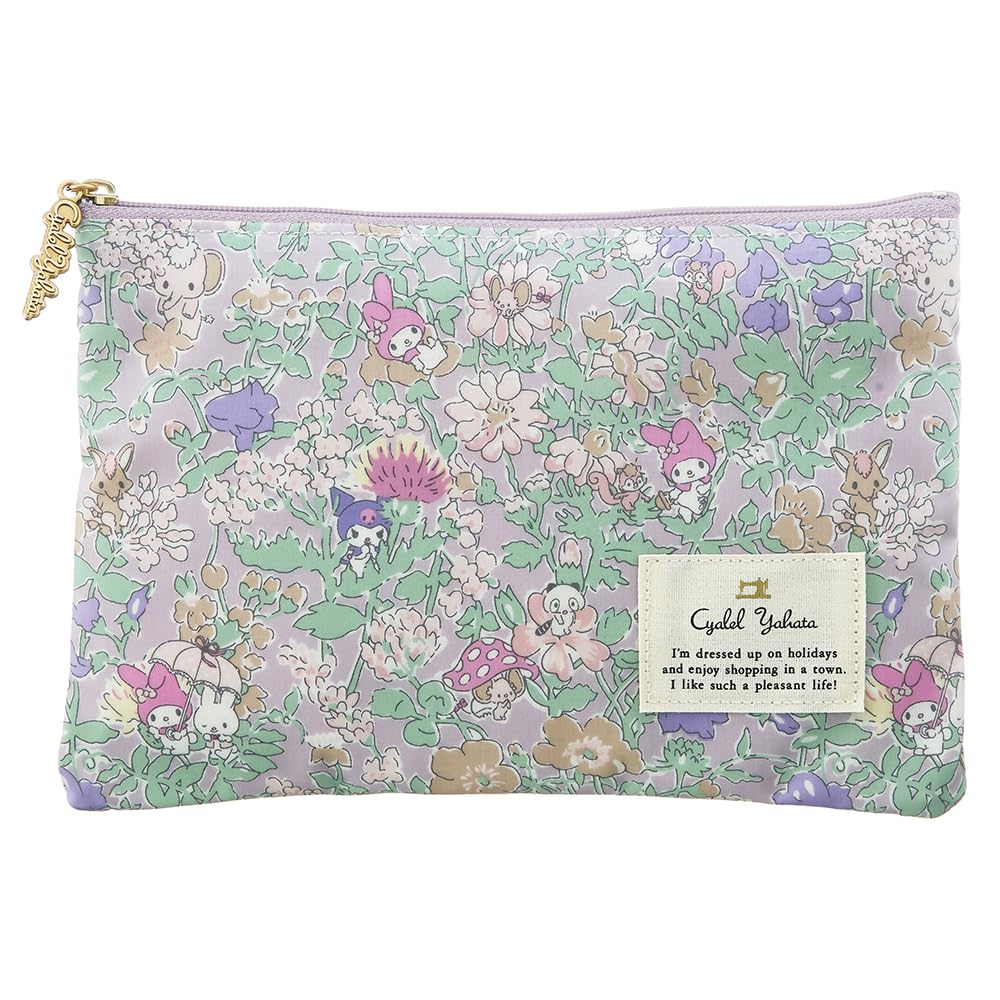 Sanrio Charakter Flache Tasche, Schlank, Leicht, Niedlich, Kosmetiktasche, Sparbuchhülle, Reisepasshülle, Kleinteile-Etui, Innenbeutel mit Blumendruck, Hergestellt in