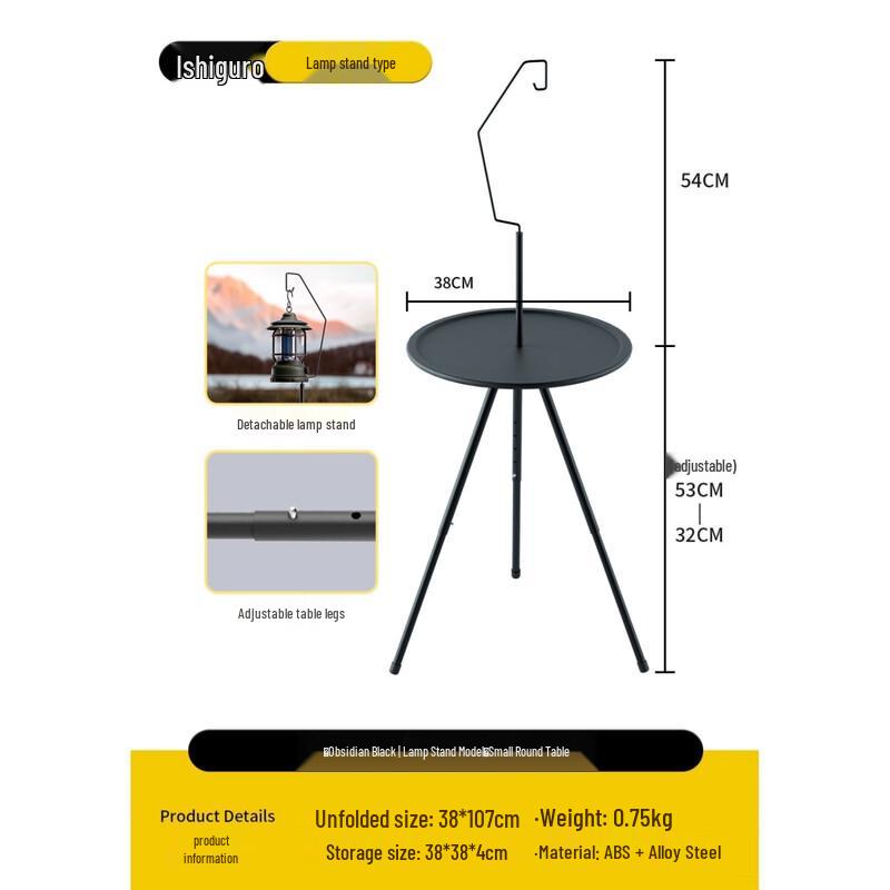ZISIZ Outdoor Folding Adjustable Round Table with Lamp Stand