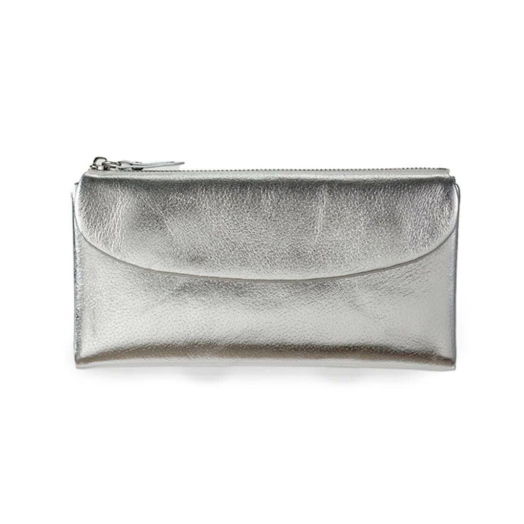 Barcos Metallic-Leder Lange Geldbörse für Damen, 11 Kartenfächer, Scheinfach, Münzfach, Magnetverschluss, Elegantes Glänzen, Beliebtes Silber