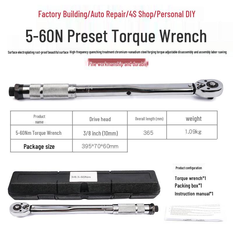 Voreinstellbarer Drehmomentschlüssel 3/8-Zoll-Antrieb 5-60 Nm