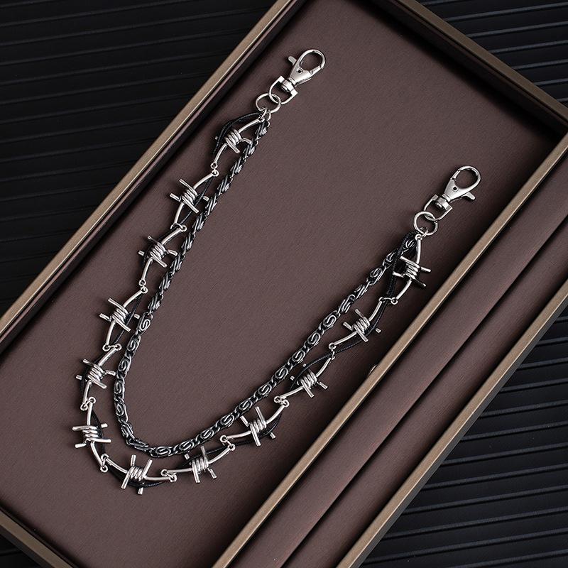 Personalized Punk Wind Leather Rope Thorns Trousers Men'S Trendy Cool Double Waist Chain Fashion Hip Hop Lanyard