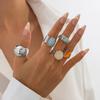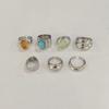 Stacked Gem Ring Set For Women, Vintage Metal Percussion Open Wide Ring Jewelry