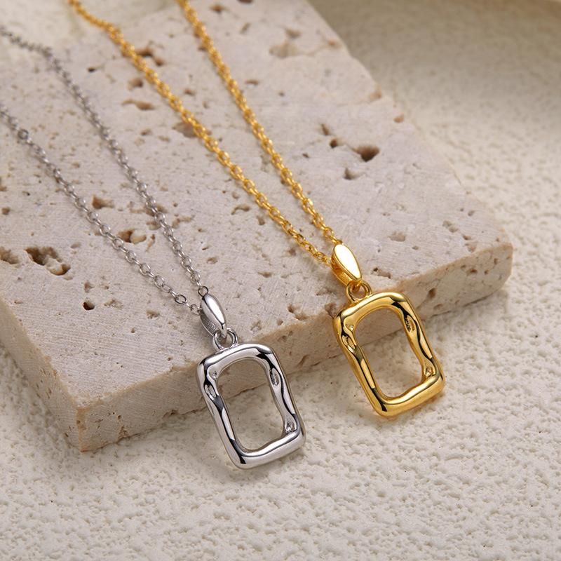 S925 Sterling Silber Bunte Schatzkette Damenmode Einfach Unregelmäßige Textur Französischer Kunstrahmen Anhänger