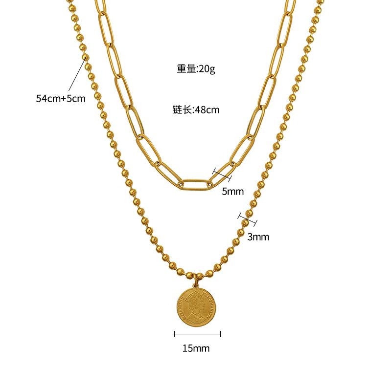 Französische Münz-Königin Halskette Damen Leichter Luxus 18 Karat Vergoldter Anhänger Rund Marke Titanstahl Halskette