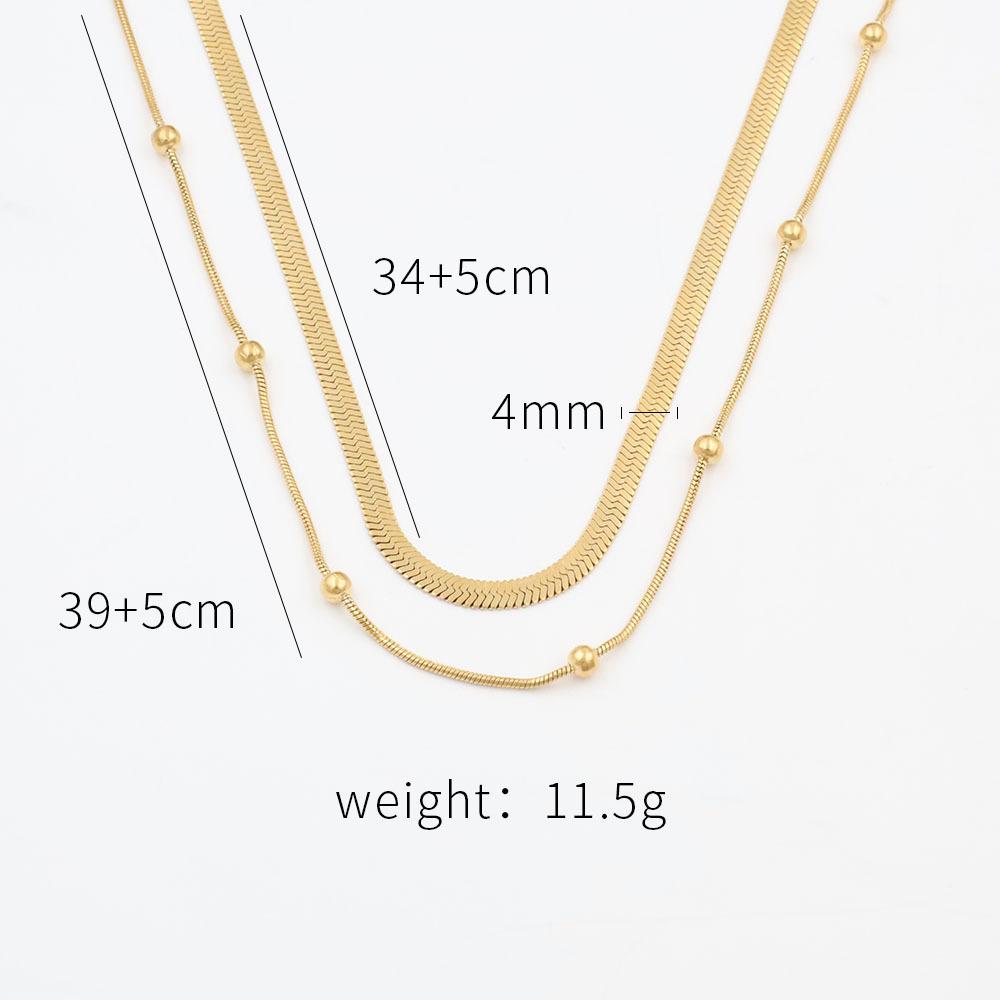 18K Vacuum Electroplated Gold Stacked Bead Chain Snake Bone Chain Women'S Fashion Stacked Titanium Steel Double-Layer Necklace