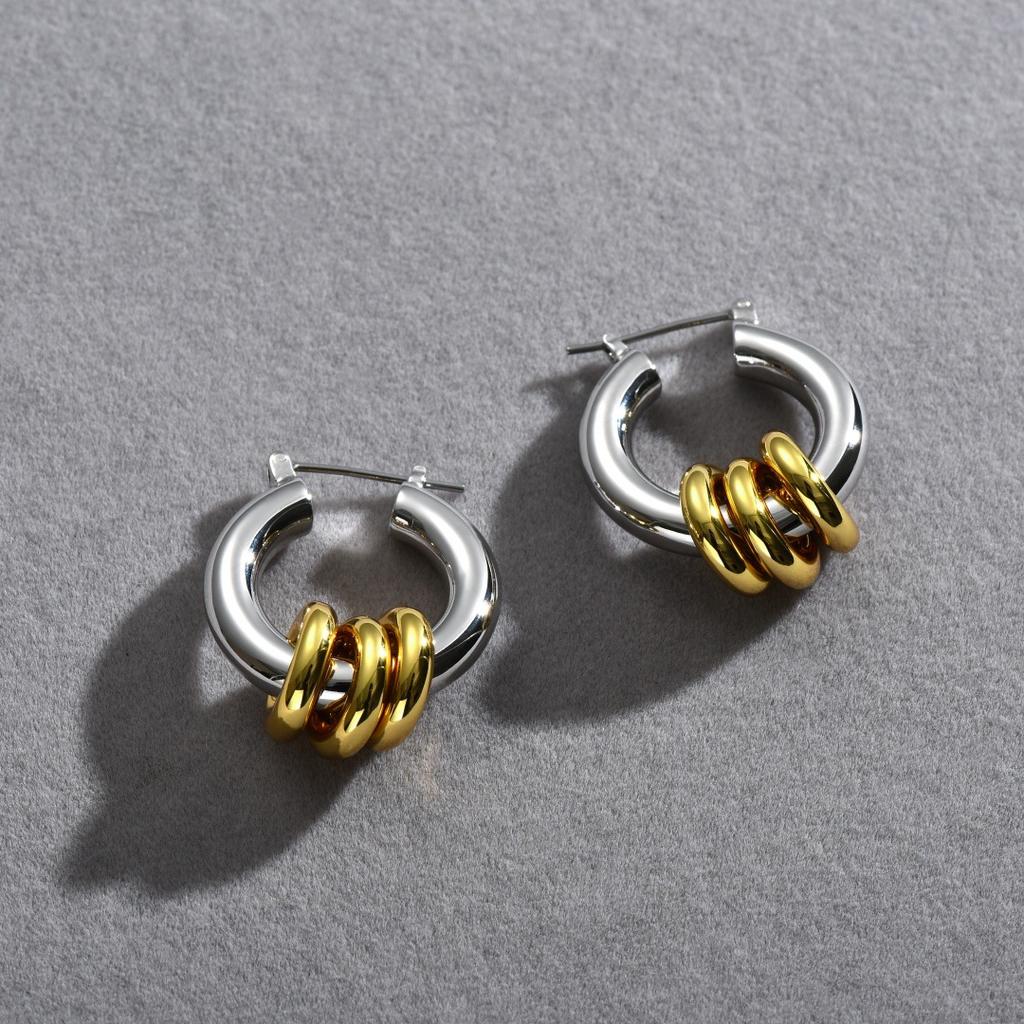 Trend Personality Unique Simple Small Ring Pendant Gold And Silver Color Matching Ear Buckle Earrings Niche Fashion Earrings Women