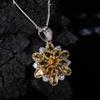 S925 Sterling Silber Natürlicher Citrin Peridot Farbiger Schatz Halskette Damen Premium Dreidimensionaler Blumen Anhänger