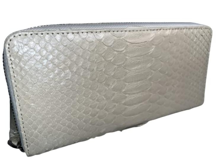 GUODI Langes Portemonnaie mit Rundum-Reißverschluss und Kartenfach, Echtes Pythonskin-Leder mit Perlmutt-Finish, Schlangenleder, für Damen und Herren, HL-10042 (Perle