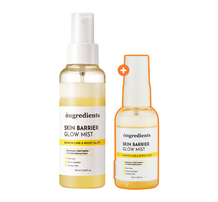 ongredients Skin Barrier Glow Mist is a refreshing facial mist designed to strengthen the skin barrier while enhancing natural radiance. Formulated with barrier-supporting and hydrating ingredients, it helps soothe dryness and deliver an instant dewy glow. The ultra-fine spray distributes evenly without disturbing makeup, making it ideal for daily and on-the-go use. This value set includes an additional 50ml for extended hydration care.