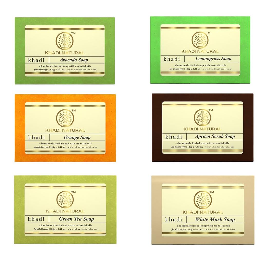 Khadi Natural Assorted Seifen-Geschenkset 6er-Pack je 125 g Handgemachte Seifen
