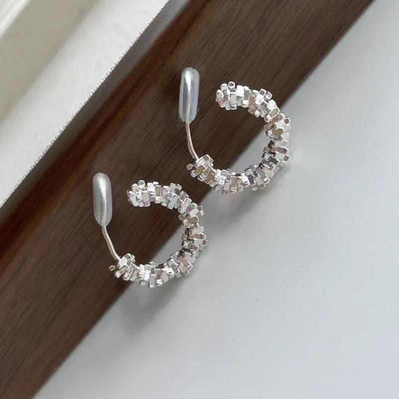 C-förmiger Kreis, gebrochene Silber-Ohrclips, Nischen-High-End-Gefühl für Frauen, keine Ohrstecker, einfacher und kalter Mückenstecher-Scheiben-Ohrclip