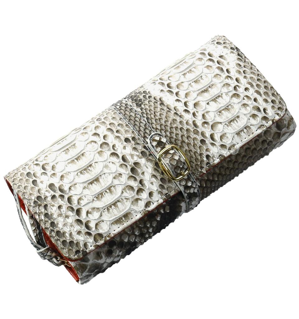 Sankyo Shokai Damen-Langbörse mit Gürteldesign aus Schlangenleder: Natürlich