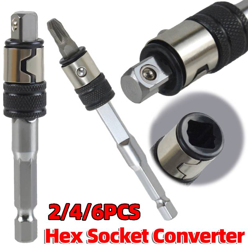 2/4/6Pcs Drill Bit and Socket Adapter Extension Swap Sockets Hex Socket Converter for Rotary Hammer Impact Drill Conversion Tool