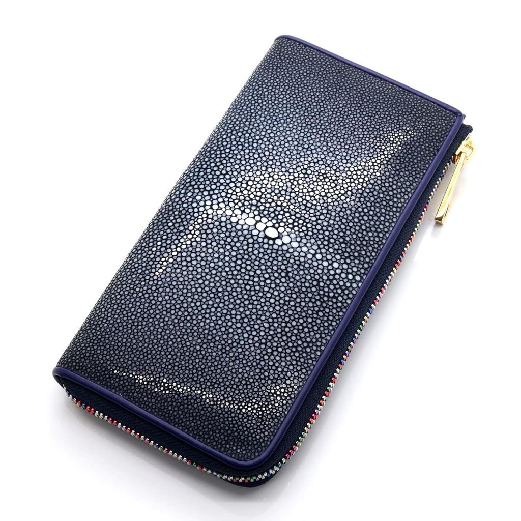 Levetta Rochenleder Langes Portemonnaie, YKK Mix Farben, L-Reißverschluss, Galuchat und Rochen Designs, Marineblau, Für Damen und Herren, Echtes Leder