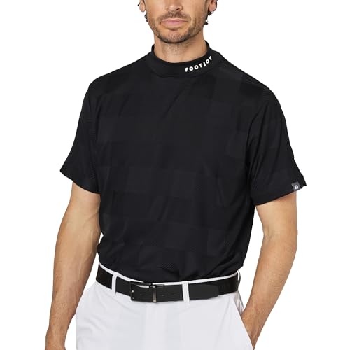 FootJoy Men's Check Jacquard Short Sleeve Mock Neck Golf Shirt, Black, Size L (FJ-S25-S05, 34687-L)