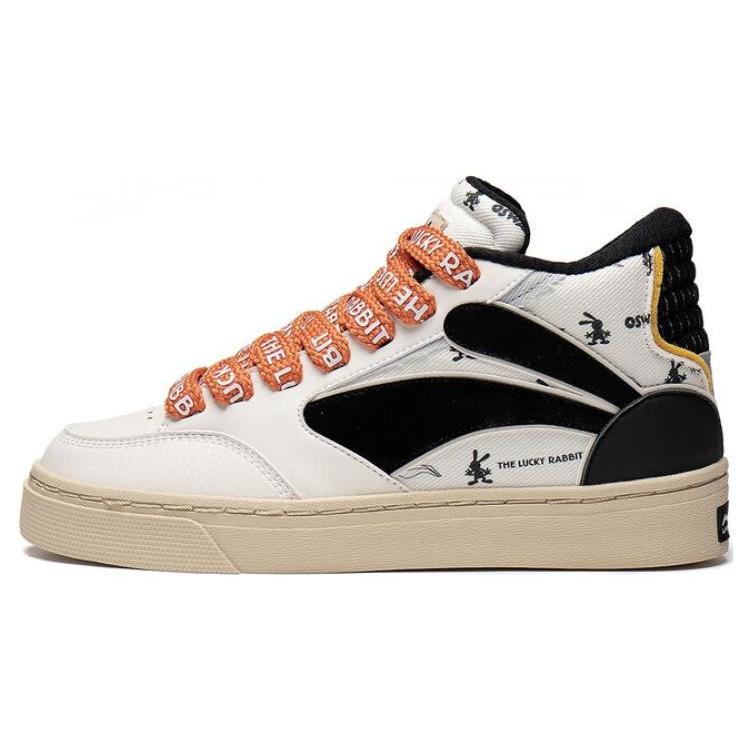 OSWALD x Li Ning Wave 180 Abrasion Resistant Breathable Mid top Skateboard Shoes Women's White Black AECT020-1