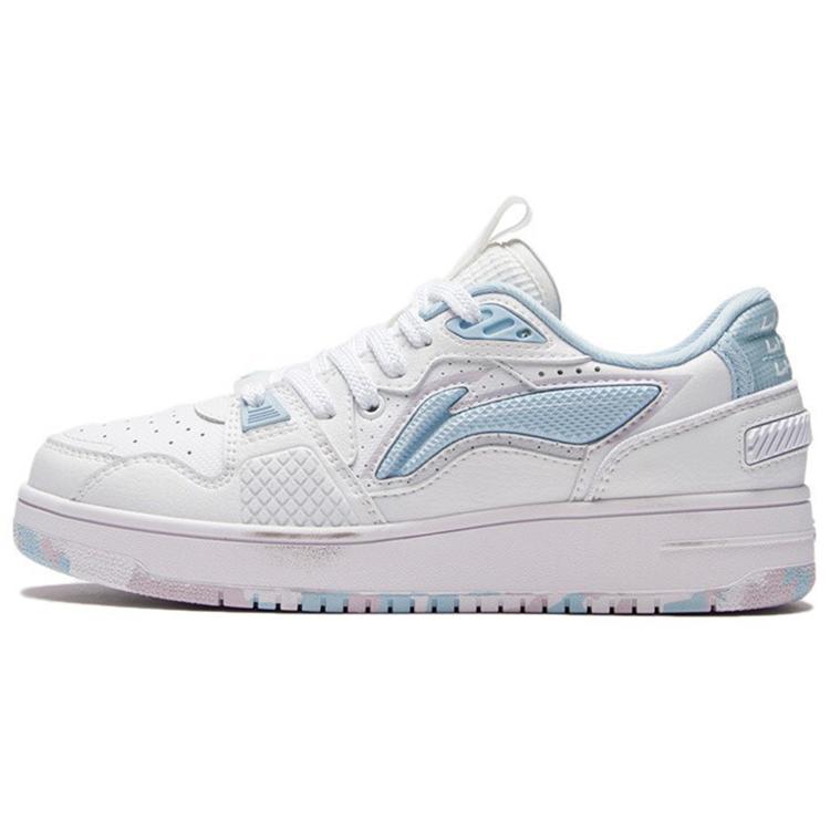 Li Ning Abrasion Resistant Breathable Abrasion Resistant Breathable Low top Skateboard Shoes Women's White Blue AGCS084-3