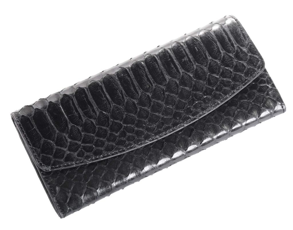 Sankyo Shokai Python Long Wallet, Thin Genuine Leather, Flap Wallet for Men and Women, Black (Imperfect Condition)