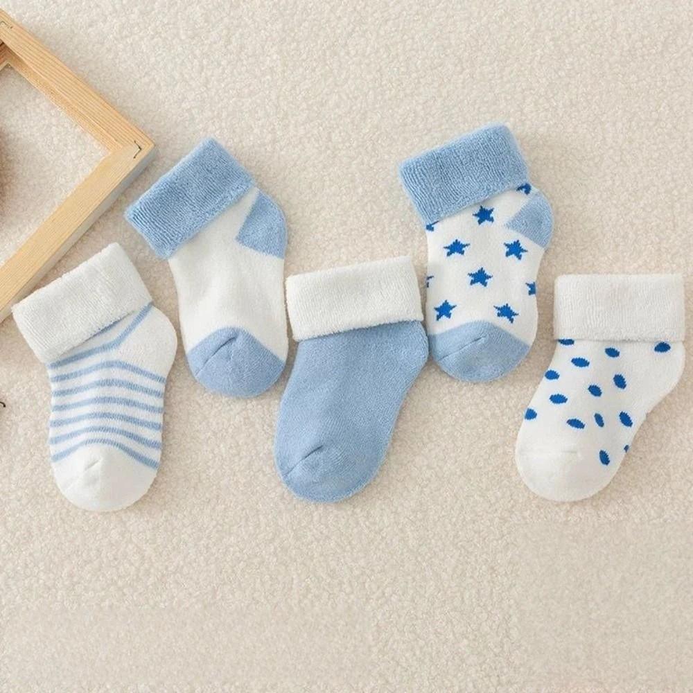 5 Pairs Non-Skid Design Newborn Socks Cotton Floor Stocking New Winter Socks for 0-3 Years Old
